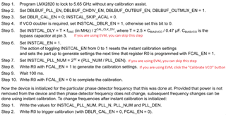 If yes, after performing the sequence, are you getting the lock detect status at Step 8? If yes, then the instant cal procedure is done after Step 10 and you can write the settings for new frequency change.