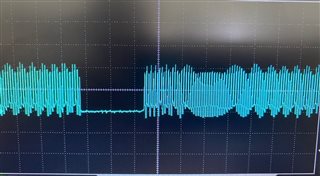 If zoom in with 100ns/DIV, it is a 10MHz sine wave. The problem is : there is a muted period for every ~0.5 second shown is the middle of scope shot.