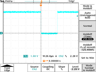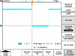 Test Method: Only change the position in the figure, no change in other locations, and all shadow registers are turned on, and the low pulse width of the TP_LD pin is captured with an oscilloscope.