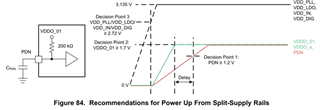 8.LMK03318 power on sequence have any timing requirement? Datasheet only have below fig,and PDN Delay doesn't mention long time。 or PDN can rise same time with VDDO_x
