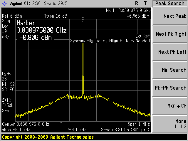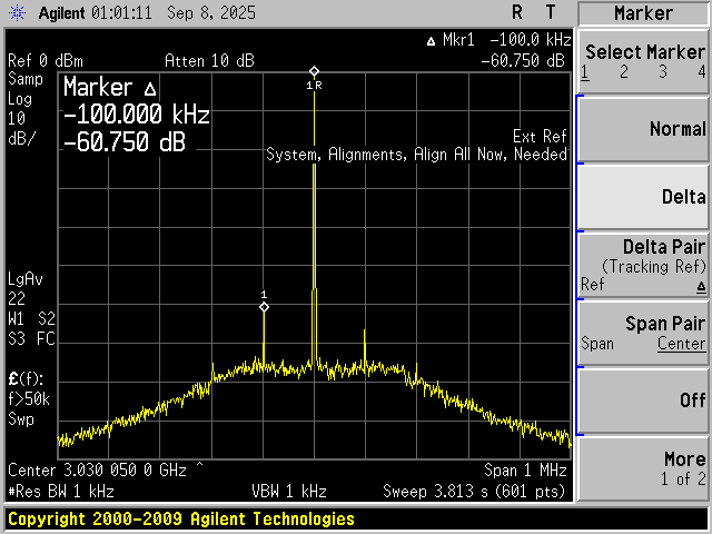At 3030.1MHz, expect spurs frequency is 100kHz, 200kHz, etc.