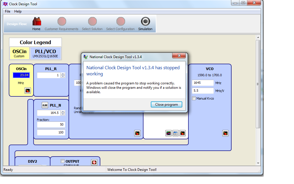 After using the tool a little while, it crashes, and now it crashes just entering a ref-osc frequency...