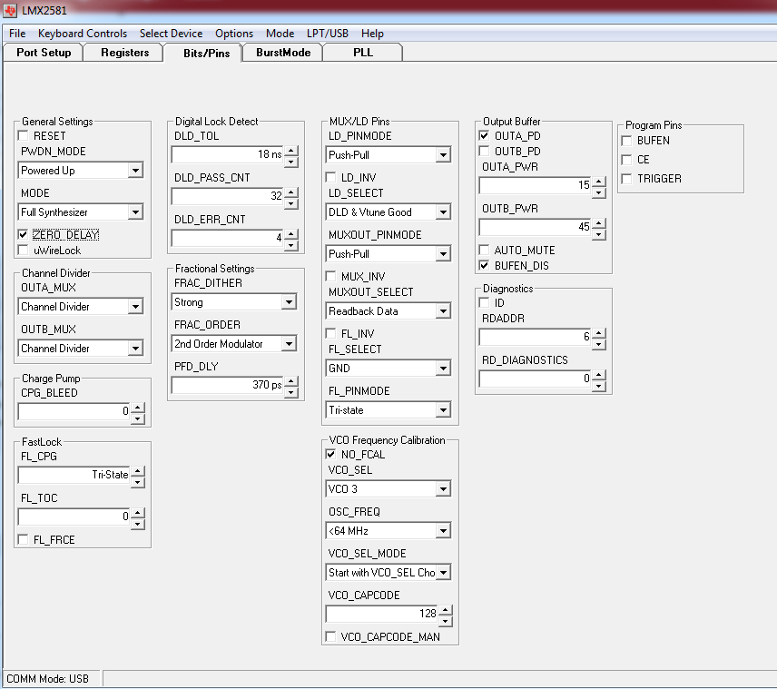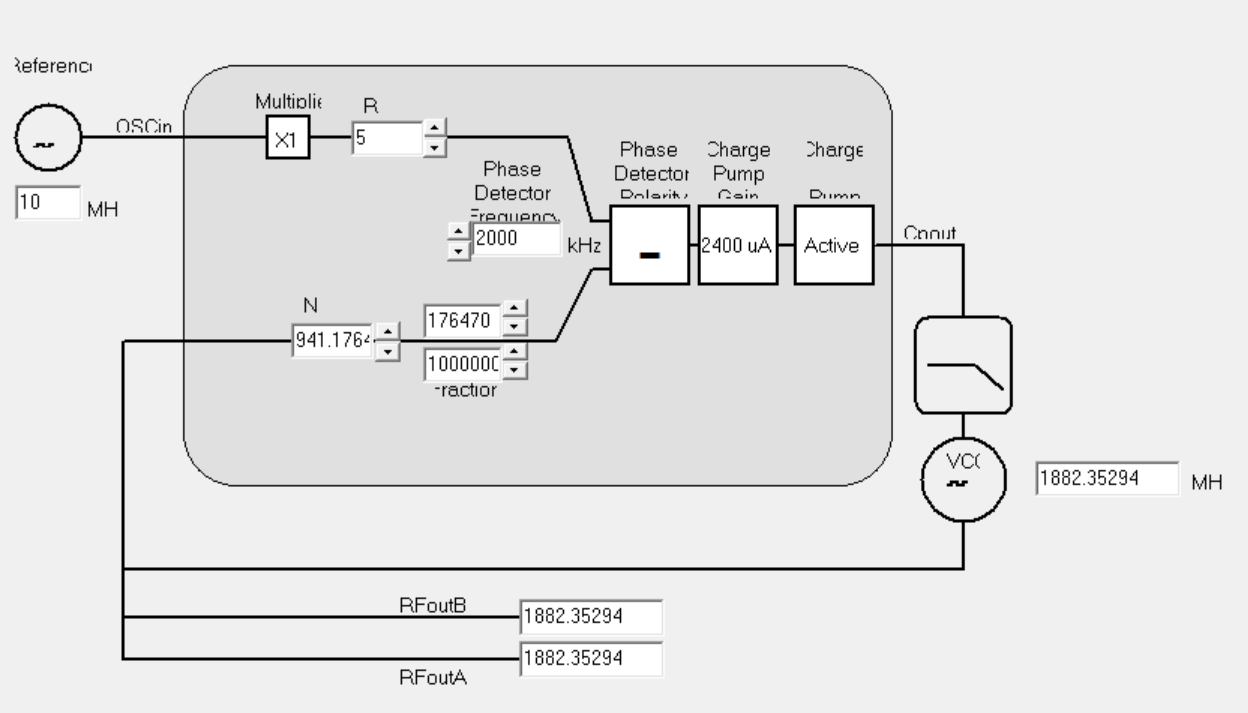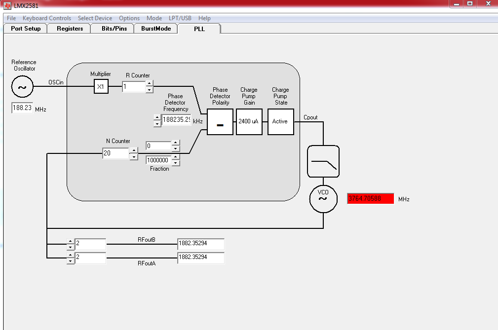 I purchased four units of LMX2581E EVB to feed clocks to four ADC cards. I am using Symmetricom 5087B Rubidium to generate multiple synchronized 10MHz external references to feed LMX2581E.