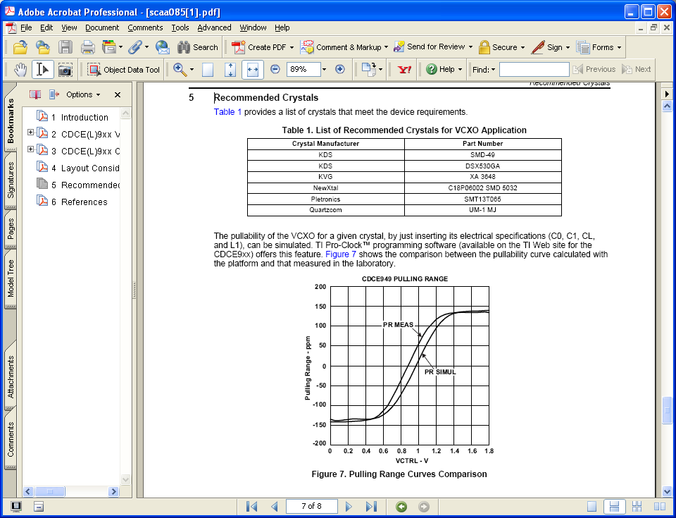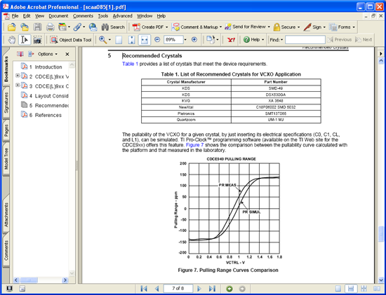 A major part of the problem is that the TI documentation on pullability refers to a number of crystal parameters that nobody else does (datasheets typically have ~2-3 parameters, TI wants ~4-5), so I have no idea how to calculate whether a given crystal (like the one above) is even remotely appropriate. Regardless, I shouldn't be seeing 500ppm difference when the crystals are spec'd for 10ppm....