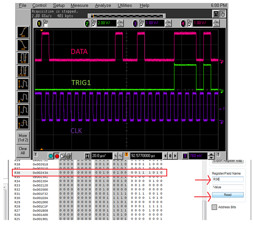 Before reading, I configured TRIG1 pin as my SPI mosi. According to the datasheet, I set R36 [2:0]=10 and R35[3]=0, R36[3:7]=0111. Then I read some registers. I can read every registers, but all registers value are wrong. Is my setting correct?