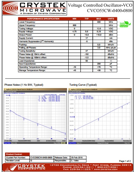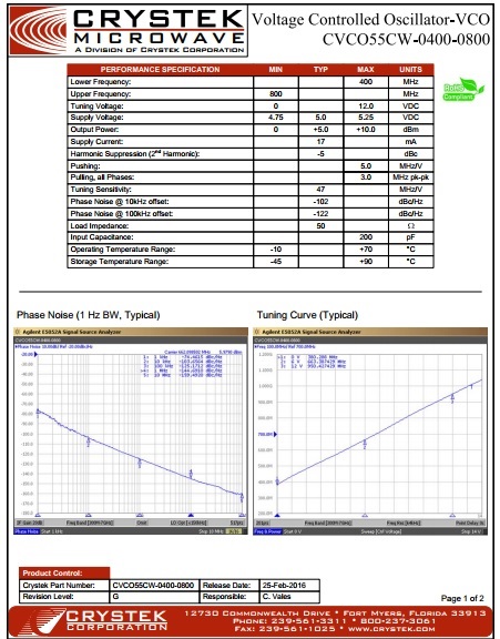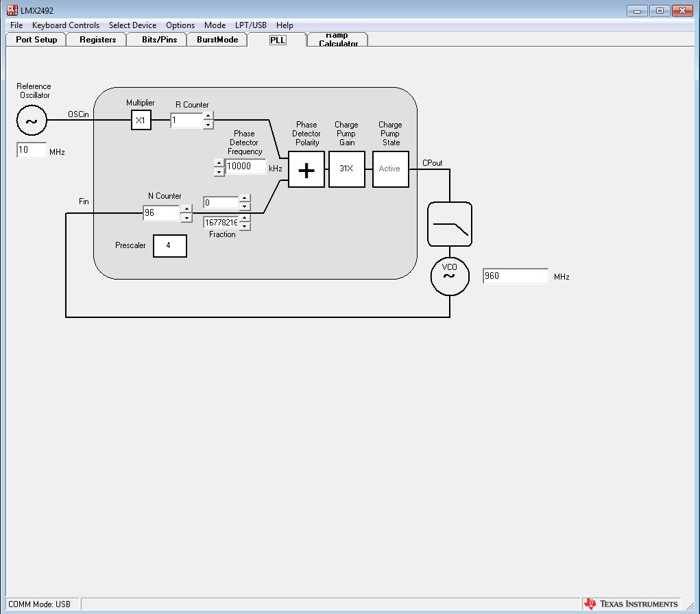 1) I change the "Reference oscillator" frequency to 10 MHz or 15 MHz so that the VCO output frequency changes to 960 MHz or roughly 1400 MHz respectively.