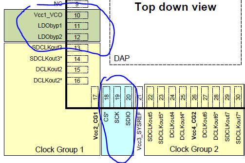 On my receiver board, I can see a spur on my LMK04828 clock outputs (the spur is coupling from a spi bus on my board) . However, if I use an external VCO i dont see the spur.I am trying to figure out what sections/ circuits on LMK04828 are turned off when I use the external VCO. In other words I am trying to figure out which pin on the LMK04828 is getting coupled with the spi bus signal and resulting in the spur. I have powered up LMK using external power supplies and didn't see a difference.So most likely power pins are not the issue. I also used a signal generator to provide the OSCIN and no improvement. So, PLL1 might not be a issue either. Any sugestions?