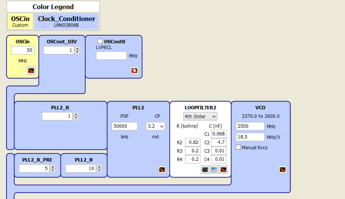 I only used one of the CLKOUTs(CLKOUT5). Input clock is 25MHz with 0.8ps jitter, the CLKOUT5 is 50MHz LVPECL. However, CLKOUT5 is inaccurate as 49MHz, and this 49MHz also varies slightly between different boards. It looks the PLL is losing lock. I read back the registers, all are same with what I wrote. The power supply ripple is 20mV. Below is my configuration.