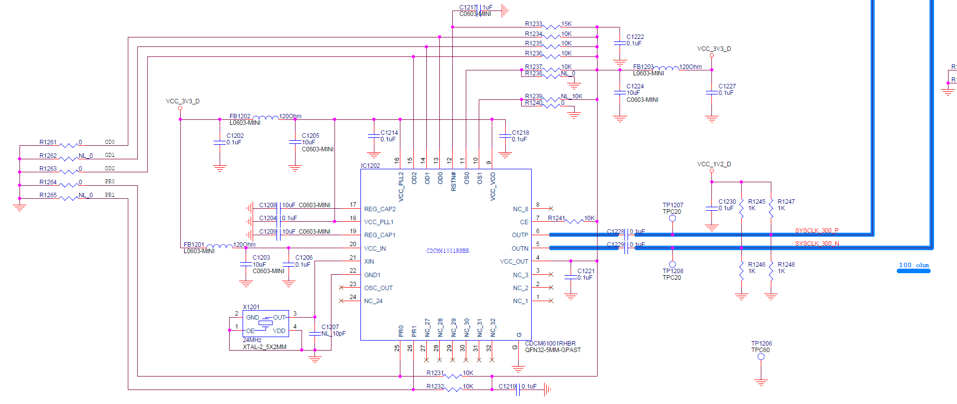 The values of R1245 - 1248 are not correct. The effective resistance should be 50Ω, right now is 500Ω.