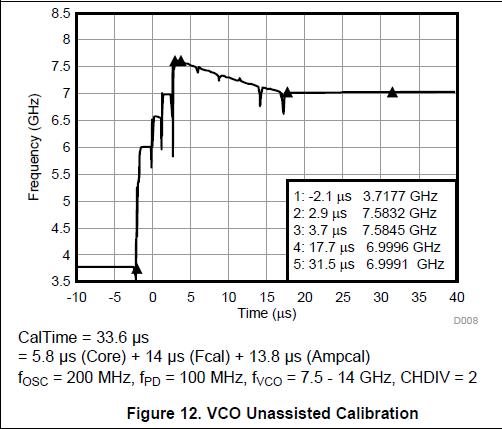 Observe the Vtune voltage with an oscilloscope. However, realize that even a 1 Mohm load might impact the locking and also that during the VCO calibration, the tune voltage is held near about 1.5 V.
