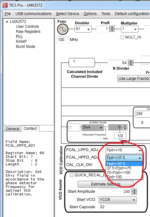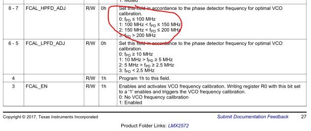 We also noticed a discrepancy of "Start VCO" parameter in TICS and Datasheet.