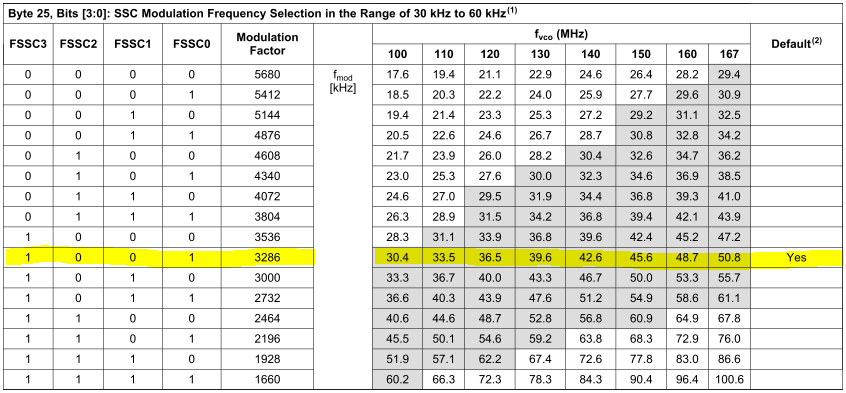 Please allow us to ask you about the CDCE913 SSC modulation frequency.