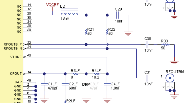 The kit has been modified to drive RFOutA deferentially, we are looking at P side. N side is terminated via 49.9 to the GND (after DC blocking cap).