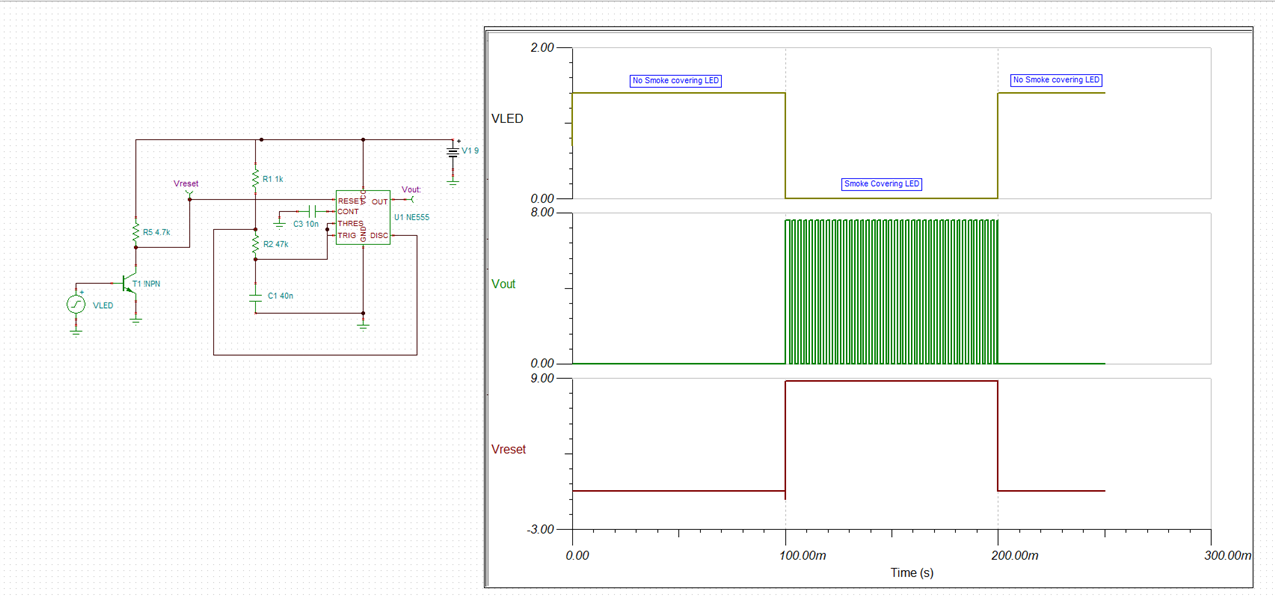 I am having some trouble understanding how this smoke detector circuit using the NE555 works.