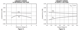 Additionally, I'm curious about the linearity error difference between Figure 11 and Figure 12 with the same combination for example VDD=5V, VREF=2.5V. Isn't it reproducible?