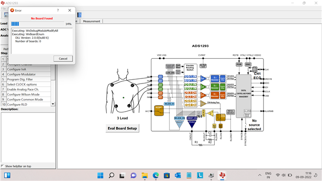 Hi I am using ADS1293EVM kit and i have installed ADS1293 software tool, on the software is not able to detect the board. Could you please help me find the driver for WINDOWS 11