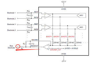 The following problem was found regarding electrode detachment detection: different thresholds were configured, channel 3 could not be detected at all, after disconnecting all electrodes, other electrodes had no AD value change, but channel 3 still had AD data fluctuation. No short circuit problem was found in hardware testing, and all channels were normal when testing signal generator.