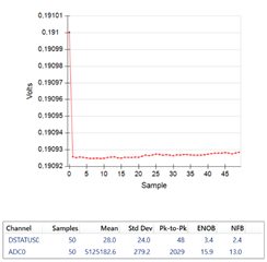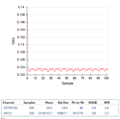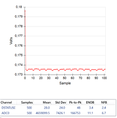 From the data sheet i should have a noise performance down to 0.016µV_RMS (32Gain)