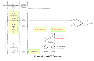 I've spent a fair amount of time trying to figure out how to implement Figure 35 in the SBAS499C-pdf - the "Lead-Off Detection".