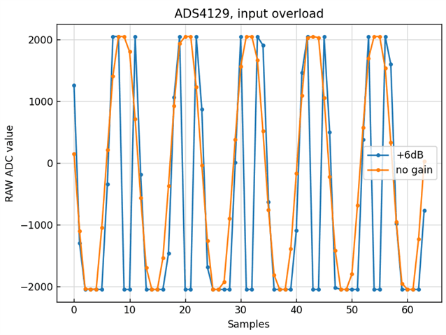 To my regret, I discovered that the expected clipping does not occur when using (digital on chip) gain.