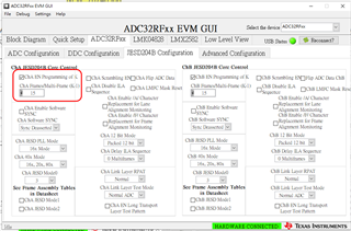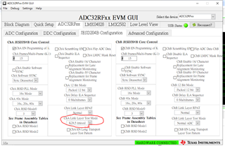 ADC GUI setting value , ADC sampling clock : 1.536Gsps , LMFS : 82820 , and serdes rate is 6.144Gbps. picture 1 .