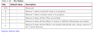 I confirmed the FPGA clock status, like picture 1 and picture 2 , jesd204 IP use CPLL. so the JESD204's register bit2 is 0 which means clock locked.