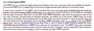 When the MCU communicates with the ADS131B04 SPI, it is observed through the oscilloscope that the DRDY signal is mostly kept low in the SPI timing, and there will be a jump when there is data transmission, is this correct? Because I see that the DRDY written on the data sheet seems to be always high, providing a falling edge when there is data ready