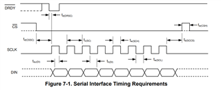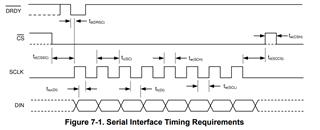 I've a question about the SPI timing of the ADS1262 device. The datasheet of the ADC says (Pg 10) that the delay time td(CSSC) from CS falling edge and first SCLK rising edge shall be 50 ns. But the sampling SCLK edge is the falling edge. The SCLK period requirement is 125 ns minimum. Does anyone know if reducing the delay time from 50ns to 0 ns, but increasing the period used to 1 us would work too or would have some problems? What is the real reason of the 50 ns requirement?