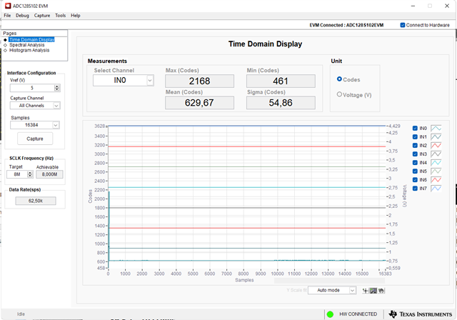 I'm using ADC128102EVM connected to Microchip SAMRH71 microcontroller.