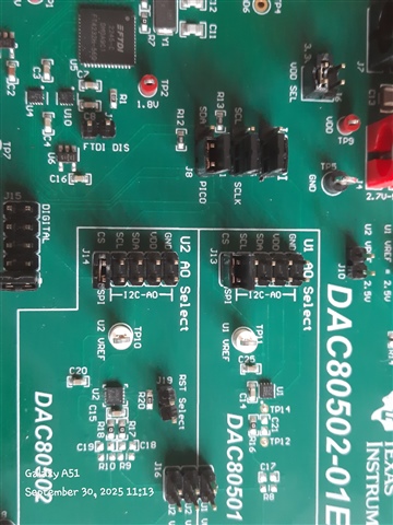 I am interested in DAC80502 and want to make it work with PIC18f87J90 but sending SPI with mu own mentioned processor generates no output either and i have scoped out the signal to DAC chip level and see SPI signals making it to the chip but nothing happens at the output. I used the same sequence as the one in the DAC80502 data sheet and see no output.