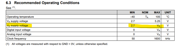Customer would like to confirm if ADC128S022 VD can support 2.5V ? our recommend voltage is 2.7 ~ VA