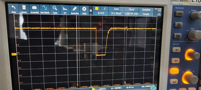 The rising edge shows an exponential transition with an approximate rise time of 43 µs.