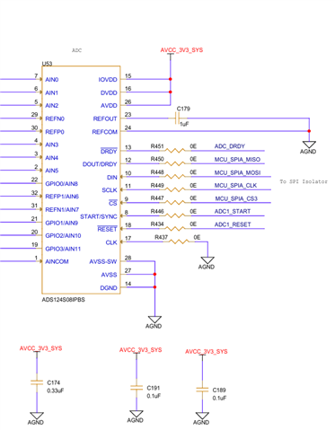 We are facing an issue with the ADS124S08 when used as an SPI slave device in our system.
