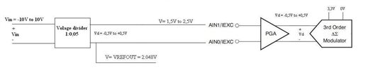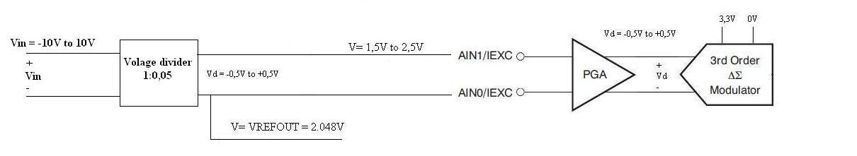 I'd like to convert a range of +-0,5 V with my ADS124 with unipolar 3,3-0 V voltage reference and power. To avoid putting a negative input to the device I thougt to measure the 0-5V using the voltage reference in the ADS, so my true input comes in range 2,5-2V aprox.