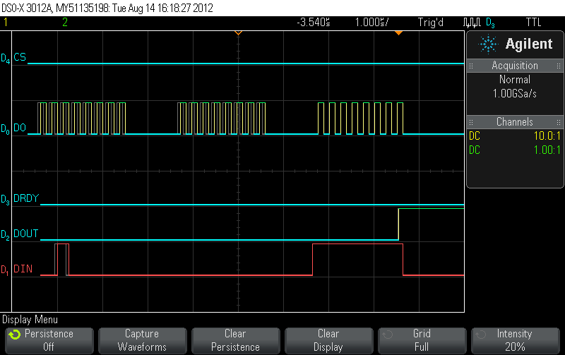 I am trying to use 4 channels of ADS1248 for a2d conversion. Writeing to MUX0 register, we should be able to look into differient AINx channels. I use the following code to write and read MUX0 register. Wonder what is missing here since we don't read back what was written to the register. I would greatly appreciate your feedback.