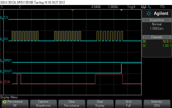 spi.write(0x29); // BCS1:0 (current) MUX_SP2:0 (positive input) MUX_SN2:0 (negative input) ex: 0x29 = +AIN5, -AIN1