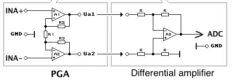 My problem is the block diagram shows that two signals are going from the PGA to the ADC. That I do not understand. The ADC has only one input. Which of the signals is passed to the ADC? Only the difference (lead)?