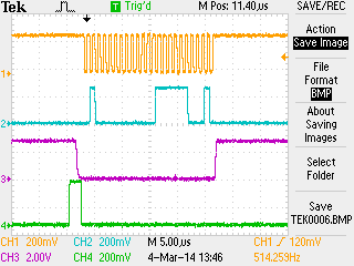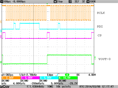 The signal from DSP is correct (I see on the oscilloscope), but the output of the DAC is seemly not working (I gave the analog input is +-11V, ref is 5V, digital input is 3.3V).