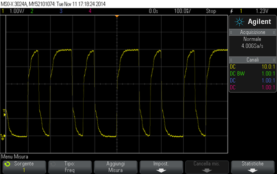 The Manchester sub-carrier frequency of the ADS1203IPWT is 10 MHz and the clock of the AMC1210 is 32 MHz