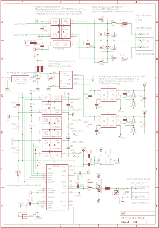 I use a FPGA to translate a digital input signal (hi = output 0V, lo = output voltage) to signals on CLR and LATCH.