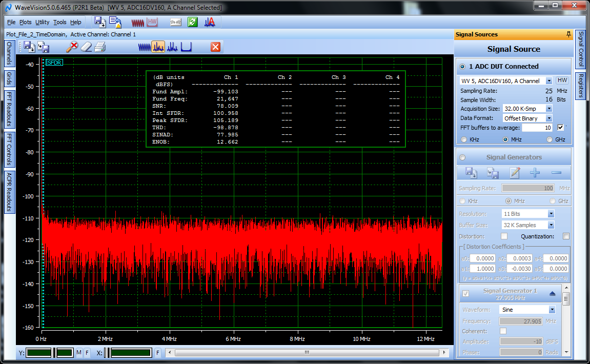 The value you mention for SNR @fin=9.7MHz and 1-dBFS with -78-dBFS is at the max sampling freqeuency 160MHz of the device.