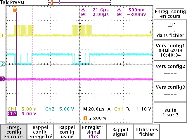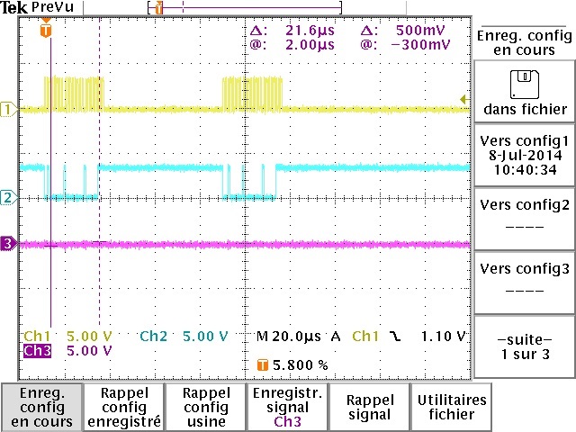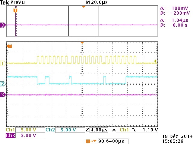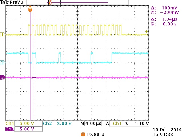 Yellow = SCLK, Blue = MOSI, Red = MISO: