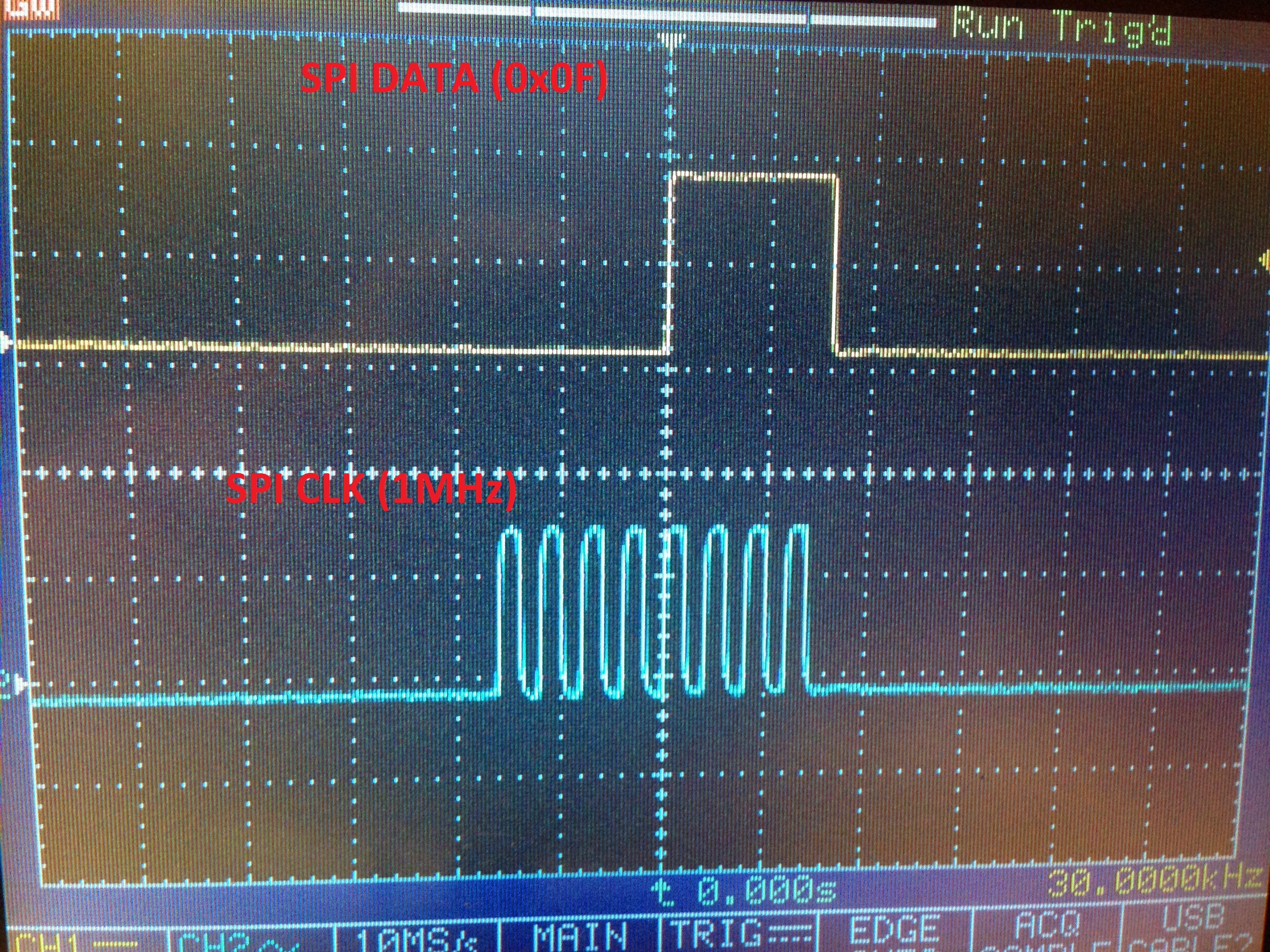 Here is oscillogram #2 (shown SPI CS and clock identical to figure #1)