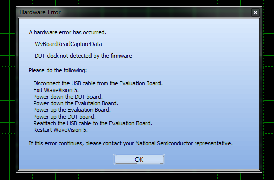 I took FPGA source code from ADC12D800RFRB Design Package and found that after synthesize and creation "Generate Programming File" on ISE Project Navigator, i cant program my FPGA. i have error: DUT clock not detected by the firmware!!! Perhaps because the version of the file wavevision used is adc12d800rfrb3 ???