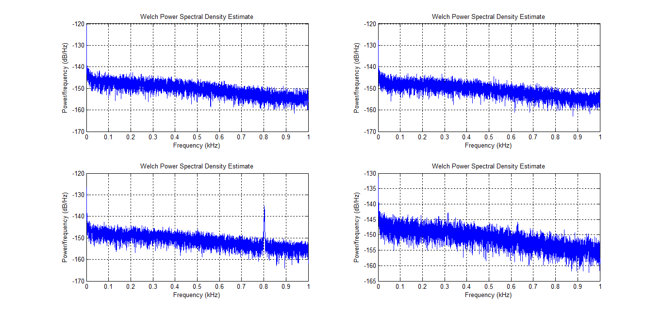 after capture data , I plot PSD of 4 channels and I see an signal in about 800 Hz only in channel 3 ?