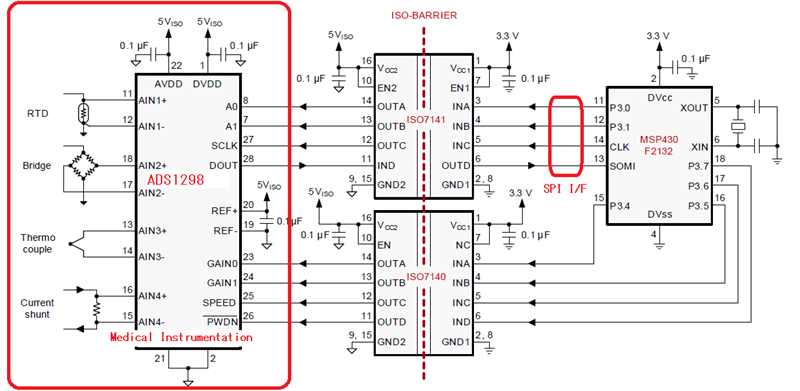 ISO7141 is able to be used as the isolation of the SPI I/F for ADS1298.