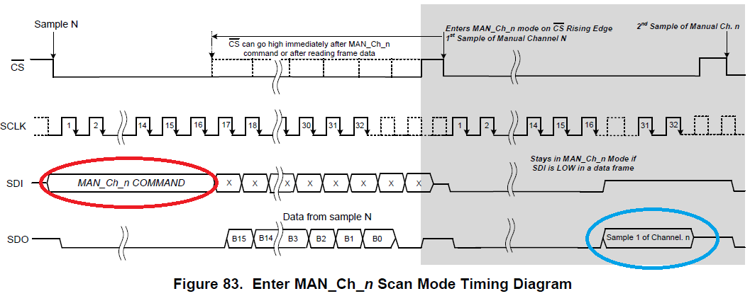 It is possible to tell me the sequence of commands to the ADS8684 be in manual mode.