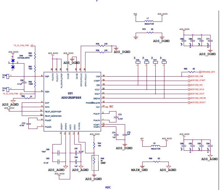 Ex_ADC_Init() { ADS1x9x_PowerOn_Init(); //Filter_Option = 3; // Default filter option is 40Hz LowPass Start_Read_Data_Continuous(); //RDATAC command for ( i =0; i < 10000; i++); for ( i =0; i < 10000; i++); for ( i =0; i < 10000; i++); ADS1x9x_Disable_Start(); ADS1x9x_Enable_Start(); for ( i =0; i < 10000; i++); for ( i =0; i < 10000; i++); for ( i =0; i < 10000; i++); Set_Device_out_bytes(); } ADS1x9x_PowerOn_Init() { Init_ADS1x9x_Resource(); ADS1x9x_Reset(); for (j = 0; j < DELAY_COUNT; j++) { for ( Init_i =0; Init_i < 20000; Init_i++); for ( Init_i =0; Init_i < 20000; Init_i++); for ( Init_i =0; Init_i < 20000; Init_i++); } Init_ADS1x9x_DRDY_Interrupt(); //ADS1x9x_Clock_Select(1); // Set internal clock for ( Init_i =0; Init_i < 20000; Init_i++); for ( Init_i =0; Init_i < 20000; Init_i++); for ( Init_i =0; Init_i < 20000; Init_i++); ADS1x9x_Disable_Start(); ADS1x9x_Enable_Start(); Hard_Stop_ADS1x9x(); Start_Data_Conv_Command(); Soft_Stop_ADS1x9x(); for (j = 0; j < DELAY_COUNT; j++) { for ( Init_i =0; Init_i < 20000; Init_i++); } Stop_Read_Data_Continuous(); // SDATAC command for (j = 0; j < DELAY_COUNT; j++) { for ( Init_i =0; Init_i < 35000; Init_i++); } for (j = 0; j < DELAY_COUNT; j++) { for ( Init_i =0; Init_i < 35000; Init_i++); } ADS1x9x_Read_All_Regs(ADS1x9xRegVal); ADS1x9x_Default_Reg_Init(); ADS1x9x_Read_All_Regs(ADS1x9xRegVal); }