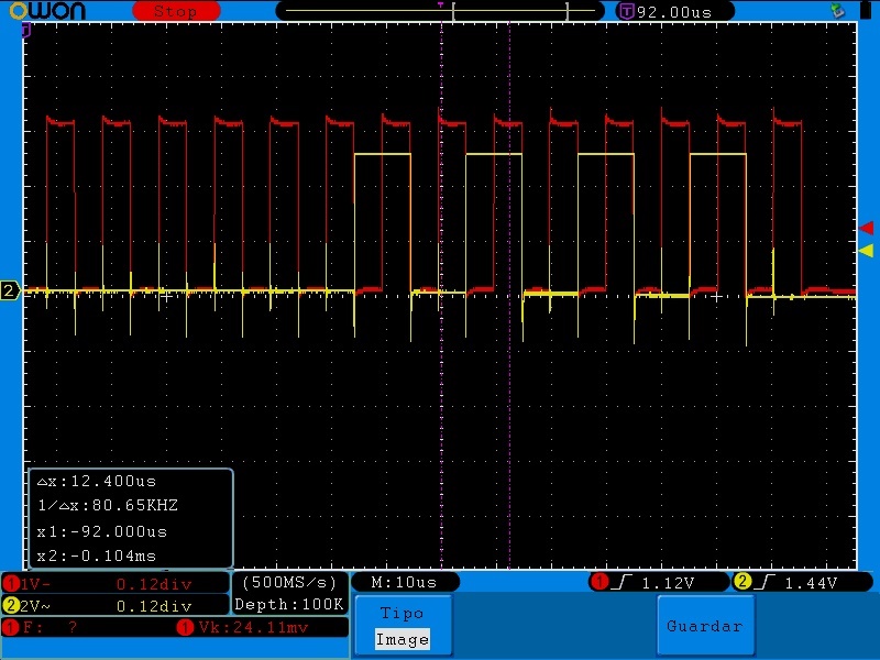 Using this bipolar configuration and the same code I'm not able to read ID register or use the GPIO, BUT rarely when the code start for asking samples of the testing signal (the same code used to get ID, GPIO and the testsignal) Ive got a 16KHz DATAREADY, but I dont know what this means because the code is made for a 500SPS sampling.