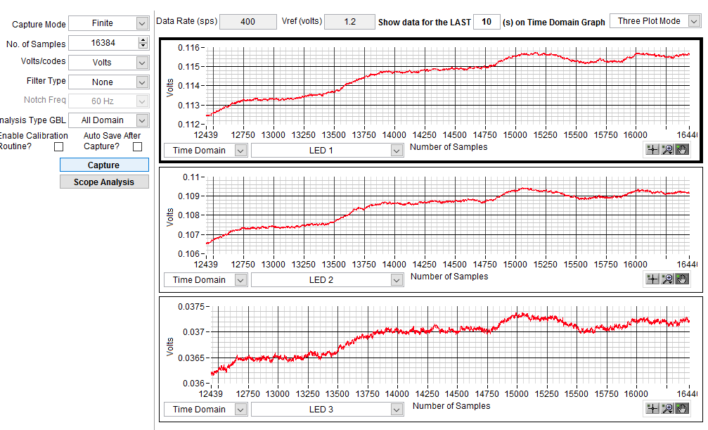 I am using an AFE4404 with the NJL5513R sensor to measure blood oxygen. When I am reading in the PPG wave, I usually get unreadable data. I am reading on the finger currently. Do anyone have suggestions on how to make this more clean data? Here is a picture of one of my readings.